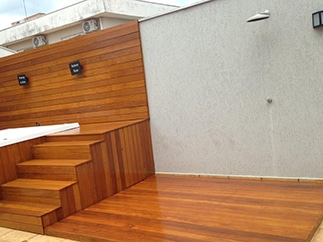 O deck de madeira dá vida a terraços, escadas, jardins e áreas externas.